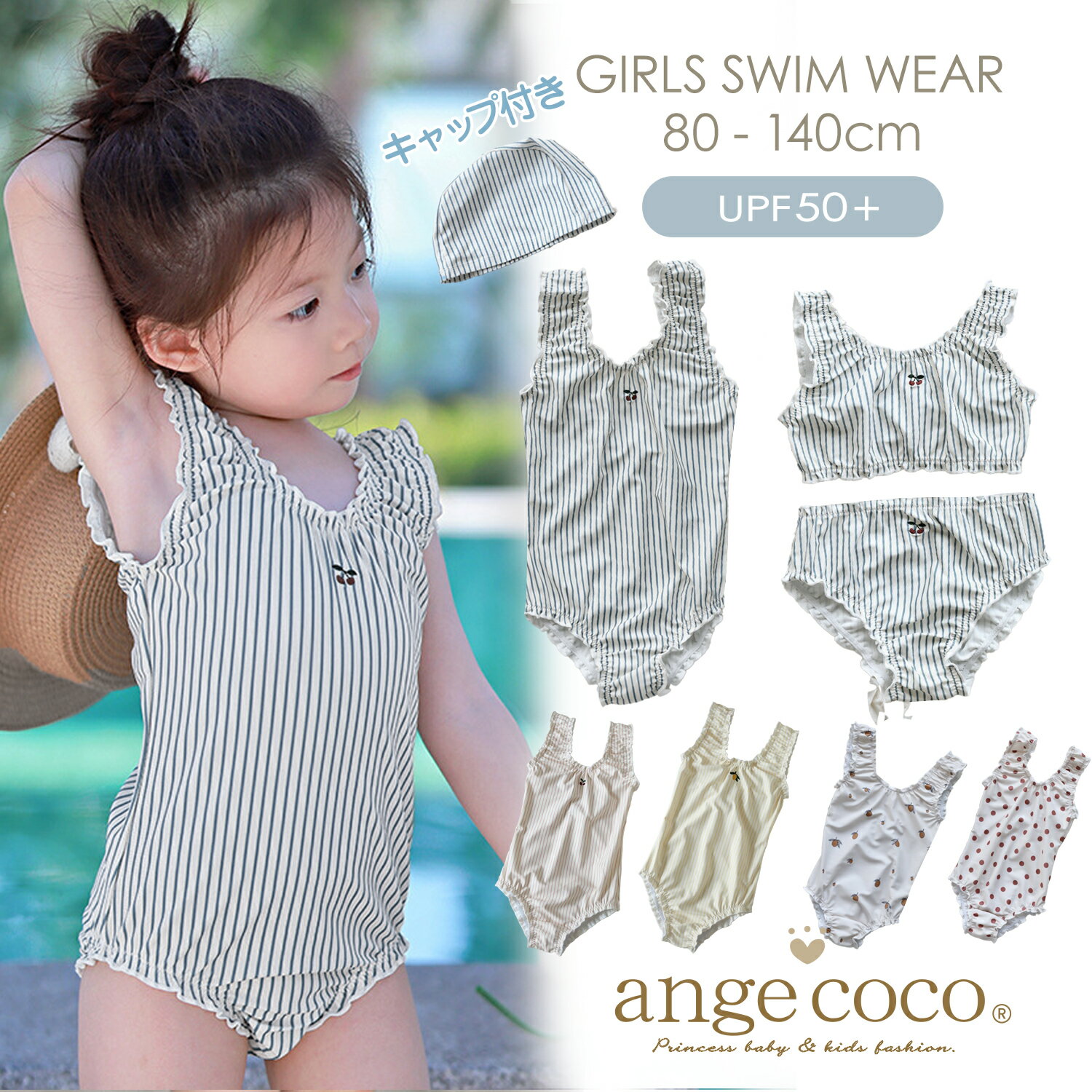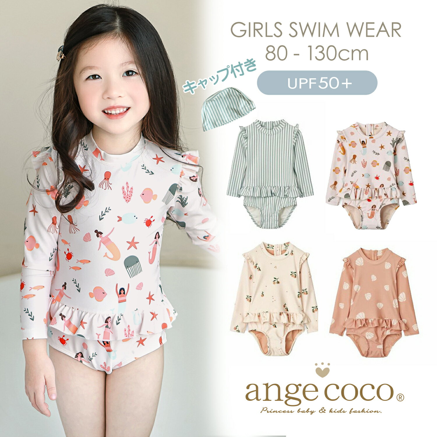 【帽子付き♪】選べるワンピース&セパレート!毎日着たくなるやさしい着心地。おしゃれ柄×動きやすさで夏を満喫♪ UVカットで安心◎プール 海 おうちプール スクール水着 プレゼントに【24日20時先着30名様10%1OFFクーポン】短納期 キッズ 水着 女の子 ワンピース セパレート ラッシュガード キャップ付 2点セット かわいい おしゃれ フリル 子供 UPF50 90 100 110 120 130 スイムウェア 子ども 子供水着 こども 女子 UVカット 保育園 幼稚園 海 プールス