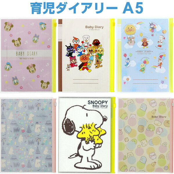 *通常在庫商品です*お誕生から1歳までの育児成長記録に【送料無料】育児ダイアリー A5 選べるキャラ 0歳~1歳 スヌーピー/ミッキー/ムーミン/アンパンマン/すみっコ 透明カバー付 日記 かわいい - メール便発送