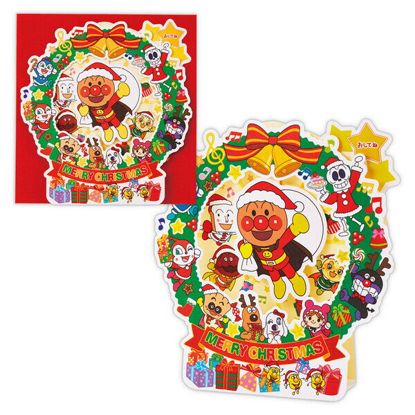 アンパンマンのセリフ入り【送料無料】アンパンマン クリスマス カード オルゴール 立体 クリスマスリース やなせたかし グリーティングカード メッセージ プレゼント - メール便発送