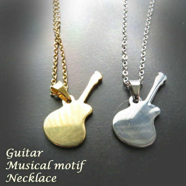 光沢銀色のギターモチーフがカワイイ★ミディアム ワントップ ネックレス シンプルギター モチーフ 音楽 ステンレス ジュエリー シルバー ゴールド カラー ネックレス ペンダント レディース アクセサリー 楽器 プレゼント ギフト 贈り物 シンプル ミュージック ミュージカル メール便【送料無料】 記念日 母の日 クリスマス