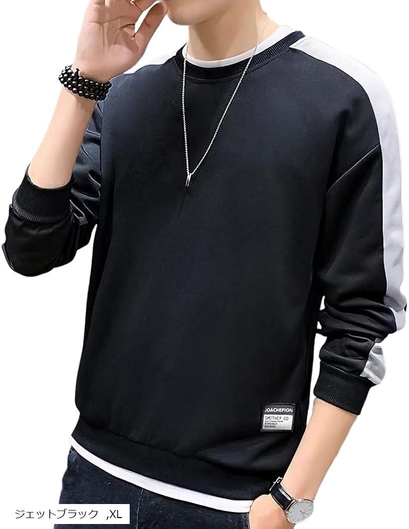 emptioエンプティオ クルーネック カットソー ストリート系 長袖 トレーナー メンズ 丸首 M ブラック (ジェットブラック, M)
