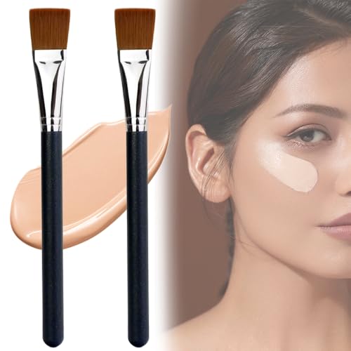 リキッドファンデーションブラシ メイクブラシ マスクブラシ 携帯用 フェイスブラシ ファンデーションブラシ 跡のないメイクアプリケーション 肌に優しい柔らかい毛 ファンデーション BBクリーム バリアクリームリキッドなどに適しています (2本セット)