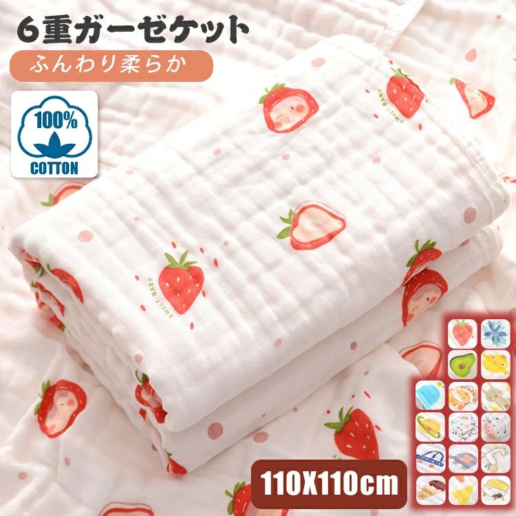 ITEM INFO 仕様 ・サイズ (約)▼ ・110*110cm 素材 ・綿・コットン カラー ・イチゴ柄 ・サボテン柄 ・アボカド柄 ・ひよこ柄 ・くじら柄 ・とら柄01 ・とら柄02 ・ウサギ柄 ・惑星柄 ・ねこ柄 ・くるま柄 ・ぞう柄 ・うま柄 ・恐竜柄 ・うし柄 ・アイスクリーム柄 特徴 ◆ 吸湿性、保温性に優れた6重ガーゼを採用。肌触りの良く、敏感肌用も安心。 ◆ ガーゼの特徴:吸水抜群、速乾、洗うほど柔らかくなり、硬くなりません。 ◆ 夏場はしっかりと汗を吸収し、冬場は暖かさを逃さず、一年を通じて使えます。 ◆ 赤ちゃんのおくるみ、バスタオル、お昼寝用や就寝用におすすめです。 ◆ おむつ替えの時のシーツ、授乳ケープ、ベビーカーの日よけ、などいろいろな用途にお使い頂けます。 ◆ 可愛いデザインバリエーションで、ギフトとしても喜ばれるアイテムです! ご注意 ● サイズに±2cmの若干誤差が生じる場合があります、予めご了承ください。 ● 商品の色は、モニターの発色具合により、実際の商品と異なって見える場合があります。 ● ご注文頂くタイミングによっては、ホームページ上で在庫がある商品も欠品になる場合がございます。 ● 入荷待ちの商品に関しましては、別途メールにてご連絡差し上げます。ご了承のうえご注文下さいます様お願い申し上げます。 ● 当店の商品は全て国内から配送されます。 ● 国内配送の商品は国内でのお買い物と同じく消費税が発生いたします。関税はかかりません。 製造国 中国製(日本の企画により厳格に生産されています。) ※重要※<オプション品ご購入の注意点> 楽天決済のシステム上、追加料金が自動加算されません。注文確定後に金額修正し、メールにてお知らせしますが、ご確認ください。 ▼ 商品名(検索キーワード)▼ ブランケット ケット blanket ハグブランケット 寝具 もうふ 毛布 掛毛布 掛け毛布 毛布布団 ふとん 布団 掛ふとん 掛布団 掛け布団 もこもこ毛布 着る毛布 肩掛け ベビーブランケット ベビーケット ベビー布団 ガーゼケット ガーゼブランケット コットンガーゼ ガーゼ生地 多重ガーゼ 6重 6重ガーゼ 6重織り ひざかけ 膝掛け ひざ掛け お昼寝ケット おひるねケット お昼寝タオルケット バスローブ バスタオル 大判バスタオル 湯上りタオル タオルケット ビックタオル おくるみ オフィス用ケット マルチケット 綿毛布 オールシーズン オールシーズン使える オールシーズン対応 1年中使える 年中 通年 年中使用 通年使用 四季兼用 春夏 秋冬 春物 夏物 秋物 冬物 春用 夏用 秋用 冬用 柔らかい 薄手 保温 防寒 防寒対策 冷え対策 冷房対策 エアコン対策 軽い 軽量 耐久性 通気性 安心 安眠 安全 快適 吸水 吸湿 速乾 洗える 洗濯可能 洗濯できる 洗濯OK 洗濯可 丸洗い 丸洗い可 丸洗いOK 手洗いOK 洗濯機洗いOK 洗濯機で洗える ウォッシャブル 清潔簡単 肌触り 肌触り良い 肌触りの良い 肌に優しい 寝心地よい 心地いい 寝かしつけ シングル シングルサイズ 1人 1人掛 1人掛け 一人 一人掛 一人掛け おしゃれ オシャレ お洒落 かわいい カワイイ 可愛い 北欧 アウトドア お昼寝 レジャー オフィス 車 車中 カフェ 会社 職場 リビング 寝室 ソファー ベッド 綿 コットン 柄入り 柄 アニマル モチーフ柄 動物 兎柄 虎柄 ねこ ネコ 猫 キャット 車柄 象柄 馬柄 きょうりゅう 牛柄 インスタ映え 男子 男子用 男児 男児用 男の子 男の子用 boy boys ボーイ おとこのこ ボーイズ メンズ 男性 男性用 女子 女子用 女児 女児用 女の子 女の子用 girl girls ガール おんなのこ ガールズ レディース 女性 女性用 男女 男女兼用 ユニセックス ベビー 赤ちゃん 幼児 園児 未満児 新生児 年少 こども 子ども 子供 子供用 KIDS キッズ 幼稚園 保育園 学生 小学生 中学生 高校生 大学生 ジュニア ティーンズ 彼女 彼氏 友人 大人 大人用 家族 姉 兄 弟 妹 娘 嫁 妻 奥さん 旦那さん 母 父 お母さん お父さん 御母さん 御父さん 義母 義父 義理 ママ ぱぱ パパ ママ友 ミセス ペア おそろい お揃い ペアルック シングル ダブル 1歳 2歳 3歳 4歳 5歳 6歳 7歳 8歳 9歳 10歳 11歳 12歳 15歳 17歳 18歳 20歳 一歳 二歳 三歳 四歳 五歳 六歳 七歳 八歳 九歳 十歳 十一歳 十二歳 十五歳 十七歳 十八歳 二十歳 お返し お礼 ご挨拶 初売り 夏祭り 夏休み 冬休み 花火大会 新生活 文化祭 学園祭 発表会 運動会 体育祭 御祝い お祝い 内祝い 結婚祝い 婚約祝い 入園式 入学式 卒業式 入園祝い 入学祝い 卒園祝い 卒業祝い 進学祝い 出産祝い 退院祝い お見舞い 合格祝い 合格祈願 就職祝い 退職祝い 栄転祝い 昇進祝い ボーナス祝い こどもの日 七五三祝い お花見 桃の日 ひなまつり ひな祭り 成人祝い 成人の日 成人式 敬老の日 還暦祝い 長寿祝い 優勝祝い 受賞祝い 当選祝い 引っ越し祝い 引越し祝い 引越祝い 新築祝い 開店祝い お中元 お歳暮 お年賀 お正月 お年玉 年始 年末 年越し 盆休み お盆玉 餞別 帰省 暑中 暑中見舞い 残暑見舞い 寒中見舞い 父の日 母の日 夫婦の日 記念日 結婚記念日 春物入荷 夏物入荷 秋物入荷 冬物入荷 春 夏 秋 冬 