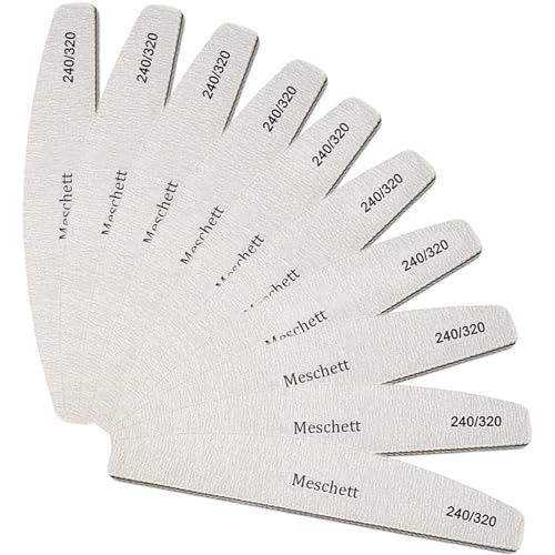 10 PCSハーフムーンネイルファイル、240/320プロフェッショナルグリットネイルファイル再利用可能な両面エメリーボードネイルファイルアクリル、ナチュラル、ジェルネイル用マニキュアツールブランド: Meschettメーカー: Meschett
