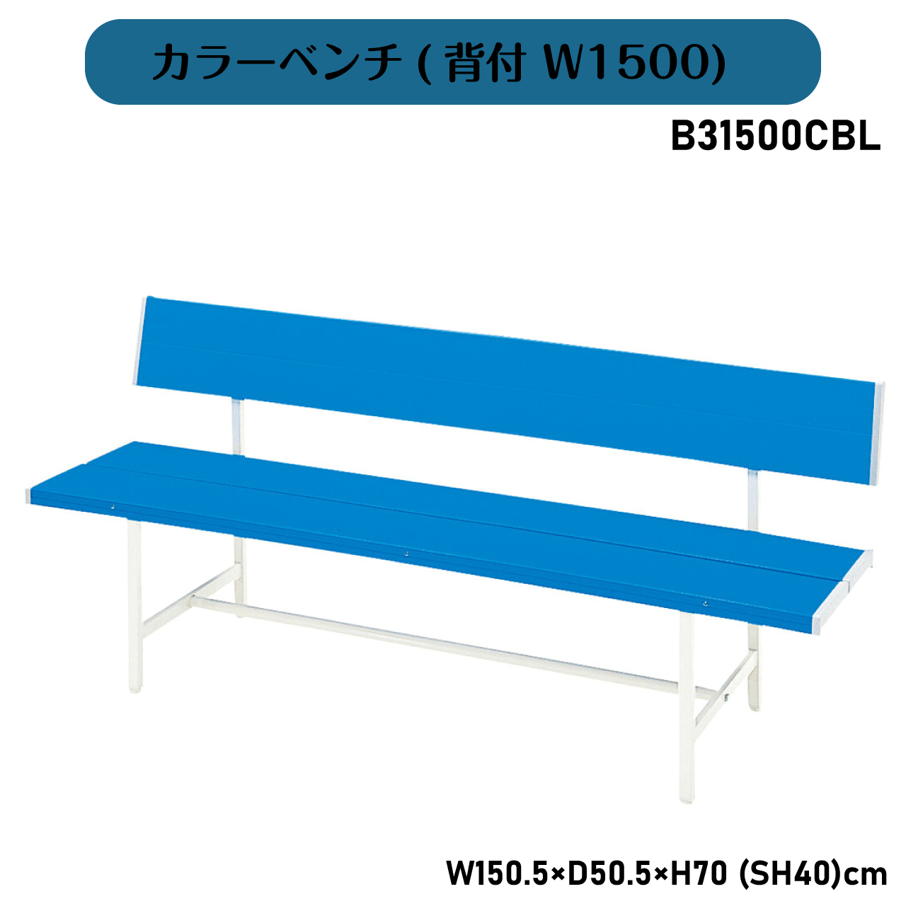 ブルーの本体にホワイトの脚がさわやかなベンチです。スタンダードなデザインのため、幅広い用途にお使いいただけるベンチです。\★10/17(金)9:59まで10%オフクーポン・5倍Pアップ中/カラーベンチ(背付 W1500) B31500CBL W150.5×D50.5×H70(SH40)cm スタンダード シンプル 屋外 ガーデン スチールベンチ コートベンチ 公園 長椅子 スポーツベンチ プラスチック チェア 送料無料
