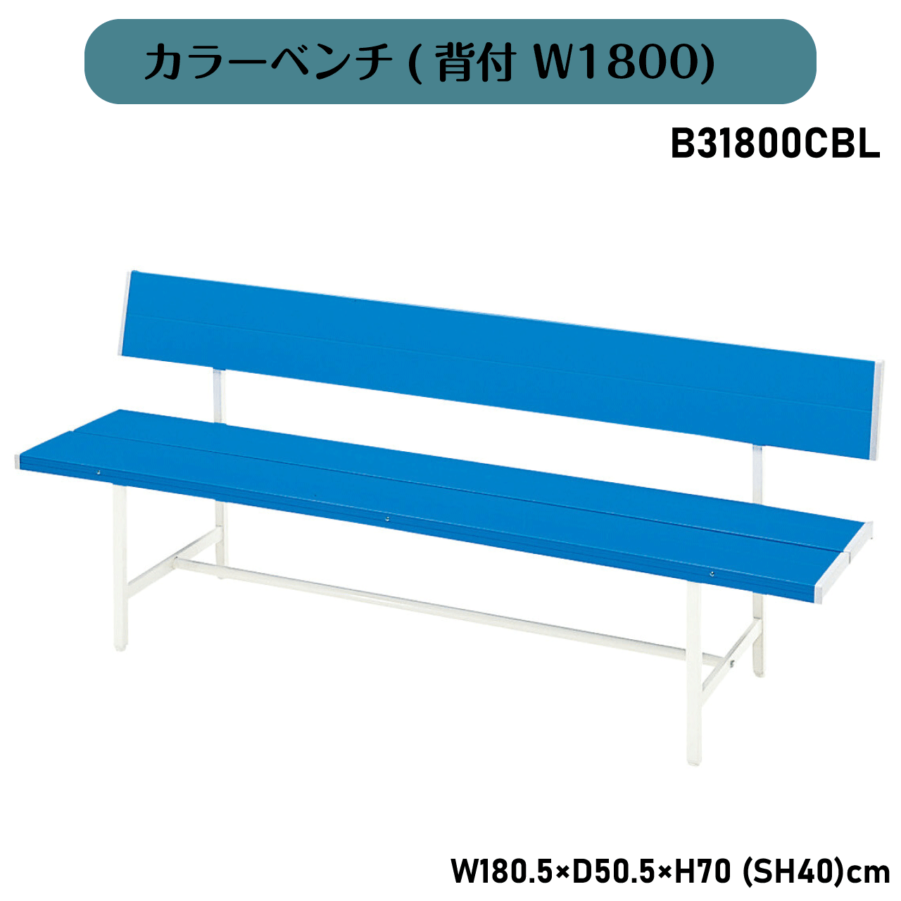ブルーの本体にホワイトの脚がさわやかなベンチです。スタンダードなデザインのため、幅広い用途にお使いいただけるベンチです。\★10/17(金)9:59まで10%オフクーポン・5倍Pアップ中/カラーベンチ(背付 W1800) B31800CBL W180.5×D50.5×H70(SH40)cm スタンダード シンプル 屋外 ガーデン スチールベンチ コートベンチ 公園 長椅子 スポーツベンチ プラスチック チェア 送料無料