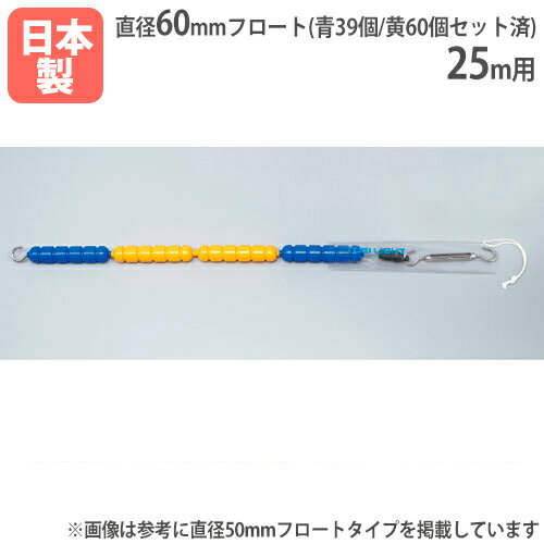 コースロープH6025 水泳教室 教育施設 プール 学校 設備 国産コースロープ エバニュー 直径60mm×長さ25m 発泡ポリエチレン製フロート ステンレス製ワイヤー ビニール被覆付 プール用コースロープ 部活 体育 日本製 EHB328