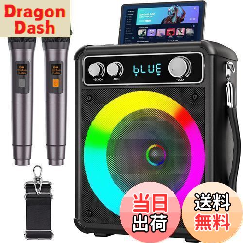 VOSOCO カラオケセット ワイヤレスマイク2本 スピーカーセット 家庭用 カラオケマイク 拡声器 Bluetooth 5.0 PAセット 小型 カラオケマシン ポータブルスピーカー AUX/USB/TF対応 ホームパーティー/会議/スピーチ/学校行事/セミナー/室外活動 などに適用 日本語説明書付