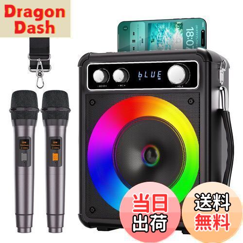 商品情報商品の説明主な仕様 【手軽におうちカラオケを楽しみましょう】業界最先端のDSP処理技術を採用し、専用設計されたHDドライバーユニットと6.5インチ独立したウーハーでを備えており、音の歪み最小限に抑えながら、音量を上げても音割れみたいなのもないです。自由に動くことができるワイヤレスマイク2本を付き、一人で再生している音楽に合わせて曲の練習ができるだけでなく、友達や家族と集まってカラオケを楽しむこともできます!br【 4way 接続方式】Bluetooth 5.0を採用しており、遅延のない安定した接続を実現し、より簡単且つ速くスマホやタブレットなど様々なBluetooth搭載デバイスと接続できます。またUSBメモリ、SD/TFカード再生、AUX端子外部音源接続で合計4種類の接続方式により、複雑な設置作業は無く、あらゆる状況で簡単に活用できます。ホームパーティー、カラオケ、街頭スピーチ、会議 、学校行事、セミナー室外防災、路上ライブ、イベントなどにも適用です。br【簡単な操作】液晶ディスプレイを装備し、電量残量や運転状況を一目で確認することができます。スピーカーの上部に機能ボタンでエコー、6種類ライトモード、再生音量など調節可能、スマホ側でも音楽再生などの操作が可能です。カラオケ音源じゃなくてもカラオケ音源として使えるボーカルカット機能も付き!直感的な操作ができるので初心者の方におすすめとなっています。br【持ち運び自由自在】重さが約2.3kgとコンパクトなサイズで、人間工学に基づき設計されたハンドルを採用し、握った際に手にしっかりフィットします。長さは調整可能ストラップも付き、スピーカーに繋げて肩に掛けたままどこでも持ち歩きやすくなります。自宅や外出先など場所を選ばず、女性やお年寄りでも楽に持ち運びできます。br【長時間利用を実現】省エネ技術により、長時間利用を実現し、1回の充電で5-8時間の再生ができ使えます。 (※音量と再生する内容によって多少異なります)。両面挿し可能なデザインが採用されるUSB-C充電ケーブルも付属されて、差し込むだけの簡単操作で充電できます。ご質問があればいつでもご連絡ください。技適マーク認証済み商品(周波数帯:80HZ-18KHz)