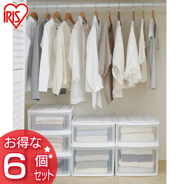 チェスト 収納ボックス 小物 収納ケース 引き出し プラスチック 完成品 リビングチェスト 6段 ホワイト 白 衣装ケース アイリスオーヤマ タンス クローゼット 洋服 収納 棚 MU-7244 おしゃれ タンス 天板 ナチュラル リビング ワイド 大容量 耐水性 落下防止 一人暮らし