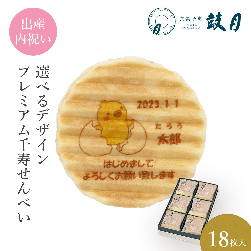 鼓月 選べるデザインプレミアム千寿せんべい (a.ひよこ)18枚入 / お祝い返し 引き出物 個包装 プリント ノベルティ 記念品 イベント 卒業 卒園 粗品 出産祝 結婚祝 ギフト 京都 内祝 プチギフト 敬老の日 贈り物 和菓子 洋風 クリーム 老舗