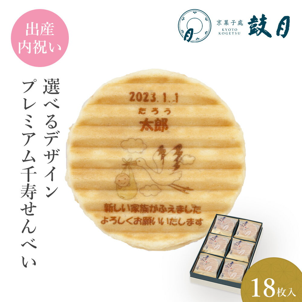 鼓月 選べるデザインプレミアム千寿せんべい (b.コウノトリ)18枚入 / お祝い返し 引き出物 個包装 プリント ノベルティ 記念品 イベント 卒業 卒園 粗品 出産祝 結婚祝 ギフト 京都 内祝 プチギフト 敬老の日 贈り物 和菓子 洋風 クリーム 老舗