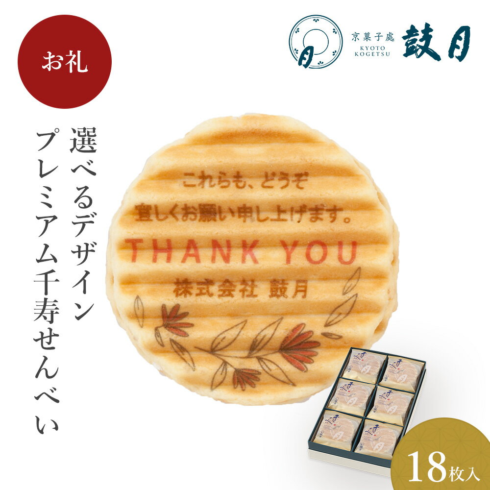 鼓月 選べるデザインプレミアム千寿せんべい (h.感謝)18枚入 / お祝い返し 引き出物 個包装 プリント ノベルティ 記念品 イベント 卒業 卒園 粗品 出産祝 結婚祝 ギフト 京都 内祝 プチギフト 敬老の日 贈り物 和菓子 洋風 クリーム 老舗