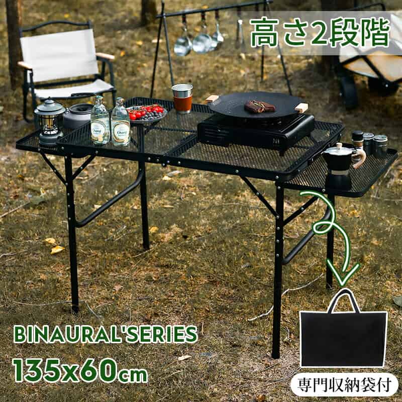 収納式 アルミ レジャーテーブル 持ち運び 移動 便利 アウトドア キャンプ BBQ バーベキュー ピクニック 作業台 キッチン用 コンパクト 家族アウトドア テーブル 耐荷重50kg 135*60cm 収納袋付き 二つ折り メッシュテーブル 軽量 折りたたみテーブル アルミ レジャーテーブル 折り畳みテーブル スチール アウトドア キャンプ用品