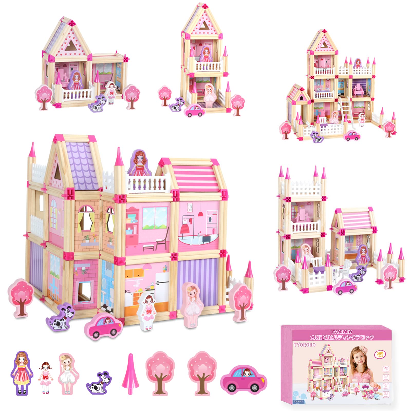 【厳選された素材】高品質の天然木と、植物性塗料を使用されて、滑らかな手触りでお子様の手を守り、無毒無害、子供の健康に心配ありません。子供に最も優しい積み木であり、考えることが楽しくなる!夢中になる知育玩具でもあります。【考えるチカラ、遊んで身につく】多様な組み合わせの造型があって、子供の創造性を伸ばします想像力を刺激します好奇心が広がります集中力が育まれます論理的思考力が養えます空間認識能力を鍛えます科学を理解することができます形や図形を学ぶことができますセット内容】 椅子4,化粧台,ピンク椅子1,ベッド1,テーブル1,ウォールピース69,長いパーツ56,短いパーツ56,人形ブロック7,ピンク尖塔13,プラスチックコネクター53(合計 298PCS)【子供のプレゼントに最適】女の子にプリンセスの夢を叶えるおもちゃです。出産祝い、子供の日、お誕生日イベント時、クリスマス、ご褒美にも、プレゼントとしてご利用いただけます。【保護者の方へご注意ください】小さな部品があります。誤飲、窒息などの危険がありますので 6 歳未満のお子様には絶対に与えないでください。必ず保護者のもとで遊ばせてください。