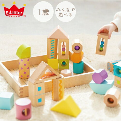 【ご出産祝いにおすすめ♪】温かみを感じる白木をベースに、インテリアにあわせやすい明るく優しい色味なのでギフトにピッタリです。エドインター 【音いっぱいつみきボリュームセット】 ファーストトイ 【1歳】積み木 つみき おもちゃ パズル 木のおもちゃ おもちゃ インテリア クリスマス 出産祝い 男の子 女の子 ベビー 赤ちゃん キッズ 子供 子ども 誕生日 プレゼント 収納袋付き