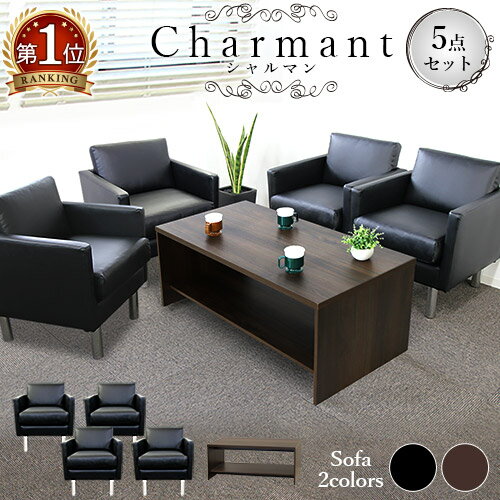 高級ソファ 病院 いす コンパクト レザー 合皮 リビング 肘掛け応接セット 5点セット 4人用 ソファーセット アームチェア センターテーブル パネル脚 おしゃれ 黒 ブラウン シャルマン SA681-1-2A4T13S LOOKIT オフィス家具 インテリア