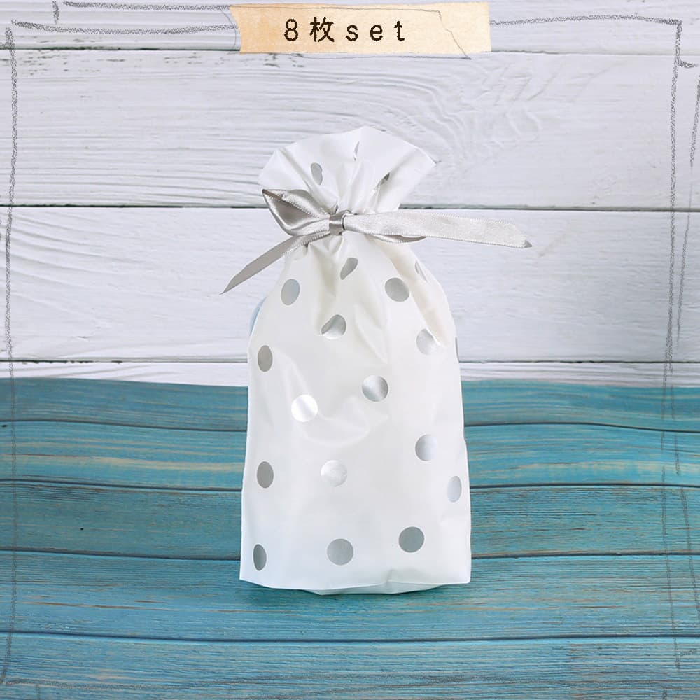 シール ギフト ラッピング プレゼントボックス ギフト梱包 ギフトバッグ ギフト包装 包装 箱 ラッピング 資材 ラッピングキット セット キット プレゼント 贈り物 ギフ最短当日出荷◆ラッピング 袋 リボン マチ付き プレゼント用 | 縦17(物が入る高さ:12.5)×横12cm×マチ6cm | 8枚+Thank you シール 8枚セット | 銀 シルバー ドット 水玉 柄