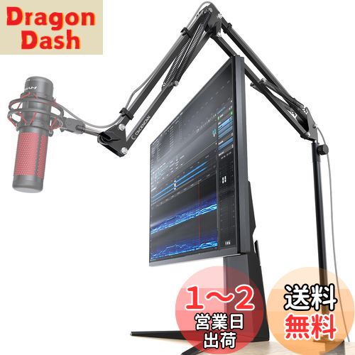商品情報商品の説明主な仕様 【長く高くなる改良型360°回転40cmの高さ】市販のアーム式マイクスタンドより高くより安定のが特徴的です。ボールヘッドにより、自在にマイク位置を調節できるマイクアームです。マイク取り付け部の根本にあるボールヘッドと、360°回転する機構により、アームの可動域を拡大。取り外し可能なスタンドが付いており、40cmの高さを追加できる、モニターより高い位置でもマイクを配置できます。br【金属製・安定性抜群耐荷重1.8kg】マイクスタンドはスチールを採用して、頑丈で耐久性も良い。伸縮式マイクスタンドアーム、耐荷重1.8kg、コンデンサーマイクも吊ることができます。 いつでも手が届く場所にマイクを設置しておけるので、急なWeb会議にもすぐに対応できます。ゲーム実況中継用やWeb会議用としてはもちろん、マイクアーム初心者も導入しやすいです。br【省スペース、角度が自由調整】マイクスタンド本体は、アームが小さく折り畳めるため、場所をとらず設置可能で卓上スペースを邪魔しません。軽量で持ち運びやすくて、こまかい角度調整が可能なため、狙った位置で固定できます。マイクホルダー本体は角度が自由に回転でき、両手が解放でき快適になります。日本語説明書、組み立て簡単です。br【変換ネジ付き・配線・ヘッドセットフック】3/8-5/8インチネジ付き、様々なマイクを交換可能です。配線フックをアップグレードした、4mm以内のマイクケーブルを固定できます。実用性と汎用性アップ。収録、配信、レコーディング、Skype、オンライン授業等に最適です!生配信、レコーディング、カラオケ、YOUTUBE、ギター、ドラム、ピアノ、自宅レコーディング、宅録など。br【品質保証・アフターサービス】本製品買上げの日より1年間安心保証サービスを提供しておりますので、商品の不具合や破損等ございましたら、弊社までご連絡頂きますようお願い致します。注文履歴に販売者質問するからご連絡くださいませ。※ 当社製品は特許庁に特許、実用新案、意匠として登録されています。知的財産権や産業財産権を侵害する不正競争行為があれば、弊社は法的手段により権利を保護します。