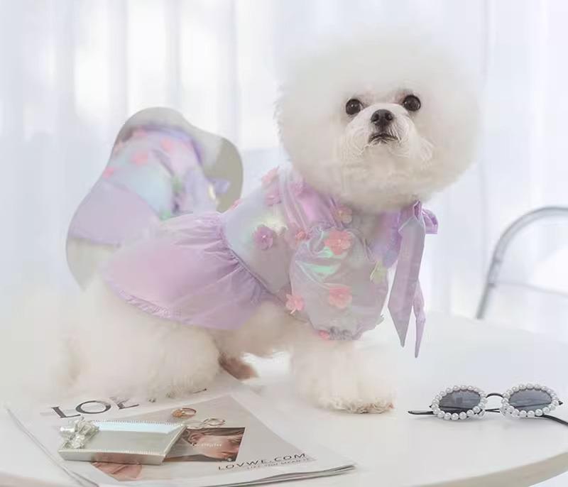 犬 夏服 スカート テディ ビション ペット 薄手 小型 ポメラニアン シュナウザー カジュアル 紫 花柄 キラキラ 春 かわいい フリル 女の子
