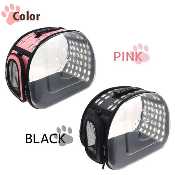 超小型犬やねこのお出かけに!通気性抜群で超軽量!便利な2WAYスケルトン キャリーバッグ ショルダーキャリー 透明 ドッグバッグ 抱っこ 折りたたみ バッグ メッシュ ソフトなショルダーバッグ ボストンバッグ クレート イヌ ネコ 犬 猫 ドライブ 肩掛け ペット用品 折り畳み式 黒 ピンク