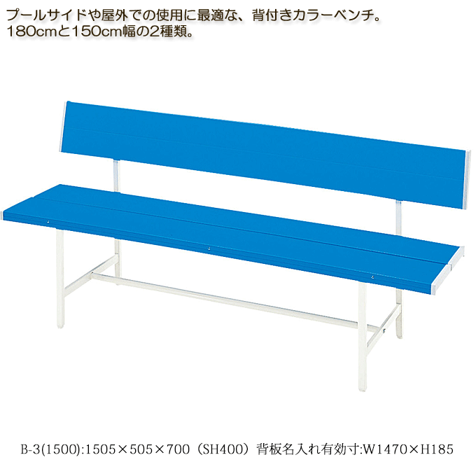 業務用ベンチ 背板部分にカッティング文字の名入れを別注で承れます背付カラーベンチ 業務用 プールサイド グランド スタンド コート ベンチ B-3(1500)