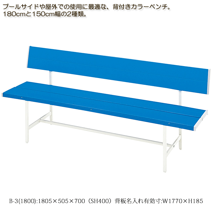 業務用ベンチ 背板部分にカッティング文字の名入れを別注で承れます背付カラーベンチ 業務用 プールサイド グランド スタンド コート ベンチ B-3(1800)
