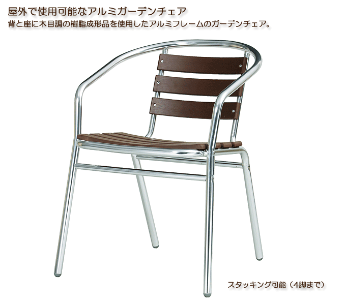 ガーデンチェア 木目柄 樹脂成型 業務用 アームチェアガーデンチェア アルミアームチェア AL-P53AC 4脚セット