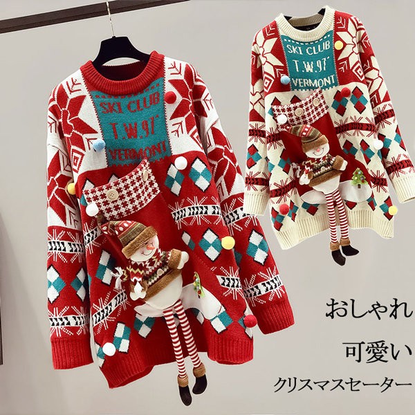 クリスマスセーター ニットセーター ダサセーター ふわふわ もこもこ レディース 可愛い ゆったり ドロップショルダークリスマスセーター ニットセーター ダサセーター ふわふわ もこもこ レディース 可愛い ゆったり ドロップショルダー