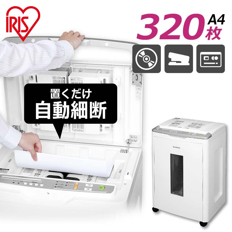 シュレッダー 電動 業務用 クロスカット アイリスオーヤマ送料無料 オートフィード 作業用 仕事用 A4 CD DVD プラスチック製カード 裁断 オフィス 会社 アイリス 安全 キャスター付 キャスター AFS320C
