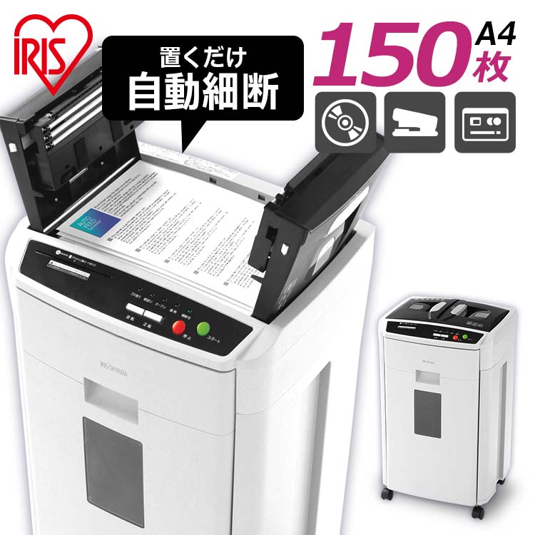 【メーカー1年保証】シュレッダー 業務用 電動 クロスカット アイリスオーヤマ 送料無料 電動シュレッダー プラスチック カード 情報漏洩 業務用 A4 DVD オフィス 会社 紙 細密 大型 会社 会社用 自動裁断 便利 AFS150HC-H