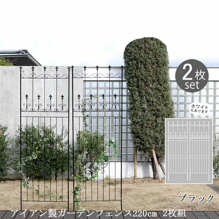 トレリス 庭 ガーデニング 屋外 バラ ◆ アイアン製ガーデンフェンスです。 ◆ 薔薇やクレマチスなどのツル性植物の誘引や外構の装飾、エクステリアとして。 ◆ 均整のとれた優雅な佇まいと、ヨーロッパの古城のような麗しさがおしゃれなデザイン。 ◆ 埋め込み式の柵で、diyで手軽に設置できます。 ◆ ワイドサイズなので、お庭をぐるっと囲みたい場合でも、少ない枚数でカバーできます。 ◆ 高さ220cmのハイタイプ。道路からのちょっとした目隠し、防犯対策に最適。 ◆ 上下分割式なので、使っていない間はコンパクトに収納できます。 ・ カラー : ブラック ・ 内容数 : 2枚 ・ サイズ(約) : 幅 71.5 x 高さ 220 x 厚さ 1.5 cm(1枚あたり) ・ 重量(約) : 4.8 kg(1枚あたり) ・ 材質 : スチール(粉体塗装) ・ 組立時間(約) : 2人で20分ガーデンフェンス 庭 フェンス トレリス 北欧風 おしゃれ アイアンフェンス 頑丈で重厚感のあるアイアン製のガーデンフェンスです。 均整のとれた優雅な佇まいと、ヨーロッパの古城のような麗しさがおしゃれなデザイン。 味気ない花壇やコンクリートの壁などに、華やかで高級感のあるフェンスをプラスすれば、立体感・躍動感が生まれます。 背の高いタイプは薔薇やクレマチスなどのツル性植物の誘引や、目隠しや間仕切りに。 低いタイプは庭や玄関アプローチなど、立ち入ってほしくないエリアへのエッジングに最適で侵入防止対策に。 どちらのタイプもお庭や外構の装飾、エクステリアとして重宝します。埋め込み式だから、diyで手軽に設置! サイズバリエーション (クリックするとご希望サイズにジャンプします。) 幅72高さ220cm 幅72高さ156cm 幅36高さ156cm 幅72高さ92cm 幅39高さ47.5cm 別カラーはこちら ホワイト その他セット品はこちら 4枚組 6枚組 関連キーワード:ガーデンフェンス 庭 フェンス トレリス アイアン 刺すだけ 外構 アイアンフェンス バラ 誘引 アンティーク調 薔薇 つる 目隠し diy おしゃれ 柵 埋め込み エクステリア 黒 白