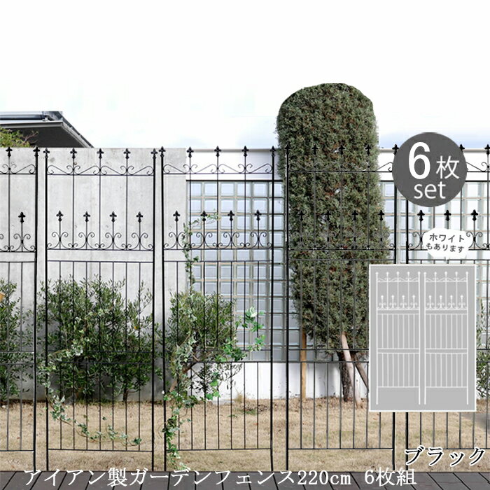 薔薇などつる植物の誘引、お庭の間仕切りに【12H限定★P3倍】ガーデンフェンス 白 庭 フェンス トレリス アイアン 刺すだけ 外構 アイアンフェンス バラ 誘引 アンティーク調 薔薇 つる 目隠し diy おしゃれ 柵 埋め込み エクステリア 220 6枚組