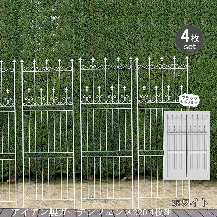 薔薇などつる植物の誘引、お庭の間仕切りに【12H限定★P3倍】ガーデンフェンス 白 庭 フェンス トレリス アイアン 刺すだけ 外構 アイアンフェンス バラ 誘引 アンティーク調 薔薇 つる 目隠し diy おしゃれ 柵 埋め込み エクステリア 220 4枚組
