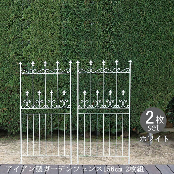 薔薇などつる植物の誘引、お庭の間仕切りに【12H限定★P3倍】ガーデンフェンス 白 庭 フェンス トレリス アイアン 刺すだけ 外構 アイアンフェンス バラ 誘引 アンティーク調 薔薇 つる 目隠し diy おしゃれ 柵 埋め込み エクステリア 156 2枚組