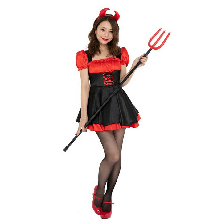 ふんわりとしたパフスリーブとミニスカートがとってもキュートキュート デビル(441742) 【 コスプレ 衣装 ハロウィン 仮装 コスチューム 悪魔 デビル 余興 レディース 大人用 女性用 パーティーグッズ 】