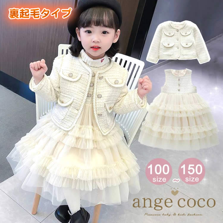 【裏起毛タイプ】2点セット ツイード生地 アンサンブル チュールワンピース シフォン キッズ服 女の子向け 秋のお出かけ おしゃれ 2歳 3歳 4歳 5歳 6歳 7歳 8歳 9歳 10歳 11歳 12歳【5日限定ポイント最大47倍】【在庫限り!売り尽くし】 【一部即納】 スーツ 女の子 裏起毛 フォーマル 保育園 子供 ジャケット お出かけ ワンピース 長袖 子ども 子供服 キッズ おしゃれ 人気 100 110 120 130 140 150 セットアップ 上下セット ホワイト 高級 春 七五三 3