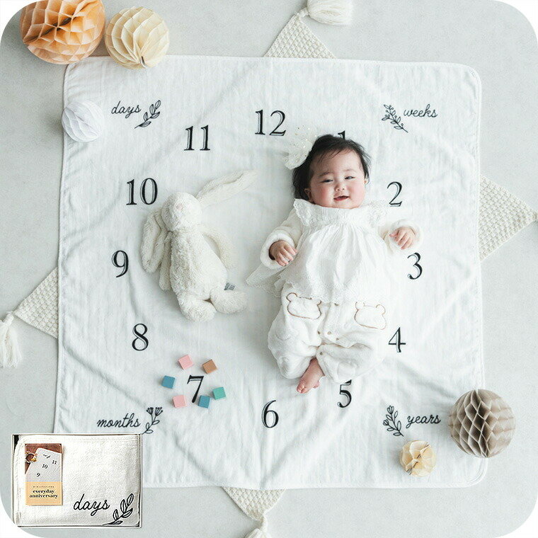商品詳細 エブリデイアニバーサリー オーガニックコットンタオル SPEC ●内容:オーガニックコットンタオル ●サイズ:約100×100cm ●オーガニックコットン100% ●箱サイズ:約19×26×6.4cm ●ベトナム製 商品説明 ■赤ちゃんの成長を思い出に、アニバーサリータオル お子様の成長の記録を写真で残せる、オーガニックコットン100%の肌にやさしいガーゼパイルタオルです。月齢のところにマークを置いて赤ちゃんを寝かせれば、毎月の成長をオシャレに写真に残せるので、素敵な思い出のアルバム作りができます。出産祝いなどでおすすめのギフトです。 ■大判サイズなので、おくるみやブランケットとしても◎ 正方形の大判タオルなので、お昼寝時のブランケットとしてはもちろん、お出かけでのおくるみなど、いろんなシーンで活躍します。やさしい素材感で心地よく包み込んでくれる万能タオルは、いつもそばにあると嬉しいアイテムです。 ■さまざまなギフトアイテムをご用意しております。 内祝 内祝い お祝い返し ウェディングギフト ブライダルギフト 引き出物 引出物 結婚引き出物 結婚引出物 結婚内祝い 出産内祝い 命名内祝い 入園内祝い 入学内祝い 卒園内祝い 卒業内祝い 就職内祝い 新築内祝い 引越し内祝い 快気内祝い 開店内祝い 二次会 披露宴 お祝い 御祝 結婚式 結婚祝い 出産祝い 初節句 七五三 入園祝い 入学祝い 卒園祝い 卒業祝い 成人式 就職祝い 昇進祝い 新築祝い 上棟祝い 引っ越し祝い 引越し祝い 開店祝い 退職祝い 快気祝い 全快祝い 初老祝い 還暦祝い 古稀祝い 喜寿祝い 傘寿祝い 米寿祝い 卒寿祝い 白寿祝い 長寿祝い 金婚式 銀婚式 ダイヤモンド婚式 結婚記念日 プレゼント ギフト ギフトセット セット 詰め合わせ 贈答品 お返し お礼 お祝い返し 御礼 ごあいさつ ご挨拶 御挨拶 プレゼント お見舞い お見舞御礼 お餞別 引越し 引越しご挨拶 記念日 誕生日 父の日 ちちの日 母の日 ははの日 敬老の日 記念品 卒業記念品 卒園記念品 定年退職記念品 ゴルフコンペ コンペ景品 景品 賞品 粗品 お香典返し 香典返し 志 満中陰志 弔事 会葬御礼 法要 法要引き出物 法要引出物 法事 法事引き出物 法事引出物 忌明け 四十九日 七七日忌明け志 一周忌 三回忌 回忌法要 偲び草 粗供養 初盆 供物 お供え お中元 御中元 夏ギフト 季節の贈り物 クリスマスプレゼント お歳暮 御歳暮 お年賀 御年賀 残暑見舞い 年始挨拶 バレンタインデー ホワイトデー うちいわい のし無料 メッセージカード無料 ラッピング無料 手提げ袋無料 人気 手土産 プチギフト お配りギフト 体験ギフト ソーシャルギフト 法人注文 まとめ買い 大量注文 ■幅広い年代の方へのギフトに。 父 母 父親 母親 お父さん お母さん 義父 義母 おじいちゃん おばあちゃん 両親 家族 兄 弟 姉 妹 親戚 祖父 祖母 叔父 叔母 友人 友達 女友達 男性 男子 女性 女子 夫 妻 旦那さん 奥さん カップル 彼氏 彼女 先生 会社 同僚 上司 取引先 部下 ママ友 20代 30代 40代 50代 60代 70代 80代 キッズ ベビー 子供 幼稚園 小学生 中学生 高校生 大学生 社会人 成人 敬老会everyday anniversary towel everyday anniversary towel ハイ、チーズ♪毎日の「かわいい記念日」をおしゃれに残そう 赤ちゃんが生まれると写真を撮る機会が増えますが、SNSで見るようなおしゃれな飾り付けが苦手な人や、産後で余裕がないお母さんもいます。このタオルは、月齢のところにマークを置くだけで、かわいい成長記録が残せるタオルです。 赤ちゃんとの生活は大変なこともあるけれど、「かわい~!」が更新されていく毎日でもあります。そんな、愛おしい日々の成長記録をおしゃれに残せますよ。素材も、オーガニックコットン100%の肌にやさしいガーゼパイルで、赤ちゃんにも嬉しいタオルです。 大変だけど、愛おしい♪赤ちゃんとの日々は「毎日が記念日」 赤ちゃんとの生活は、大変なことも多いけれど、どれも愛おしく感じる出来事ばかり。笑った、くしゃみをしたり、目を覚ます仕草ですら、かわいく愛おしく感じるものです。そんな一瞬一瞬を残しておきたいという気持ちから、気がついたらスマホの写真フォルダは赤ちゃんの写真ばかり、という人も多いのではないでしょうか。そんな「毎日が記念日」の赤ちゃんの成長記録を、おしゃれに残せるのがこのアニバーサリータオルです。 月齢だけではなく、◯日や◯年記念日までおしゃれに残せます アニバーサリータオルには、1から12までの数字の他に、四隅に「week」「year」「months」「days」と記されています。たとえば一ヶ月記念日なら、1の数字とmonthsに記しをつければ、1ヵ月記念日の月齢フォトをおしゃれに撮ることができます。 同じタオルを使うことで、1ヶ月後、半年後、1年後と、赤ちゃんの成長をより感じることができますよ。 肌にやさしいオーガニックコットン、直接寝かせても安心です アニバーサリータオルは、デザインだけではなく、素材にもこだわっています。素材は、赤ちゃんに安心して使ってもらえるオーガニックコットン10
