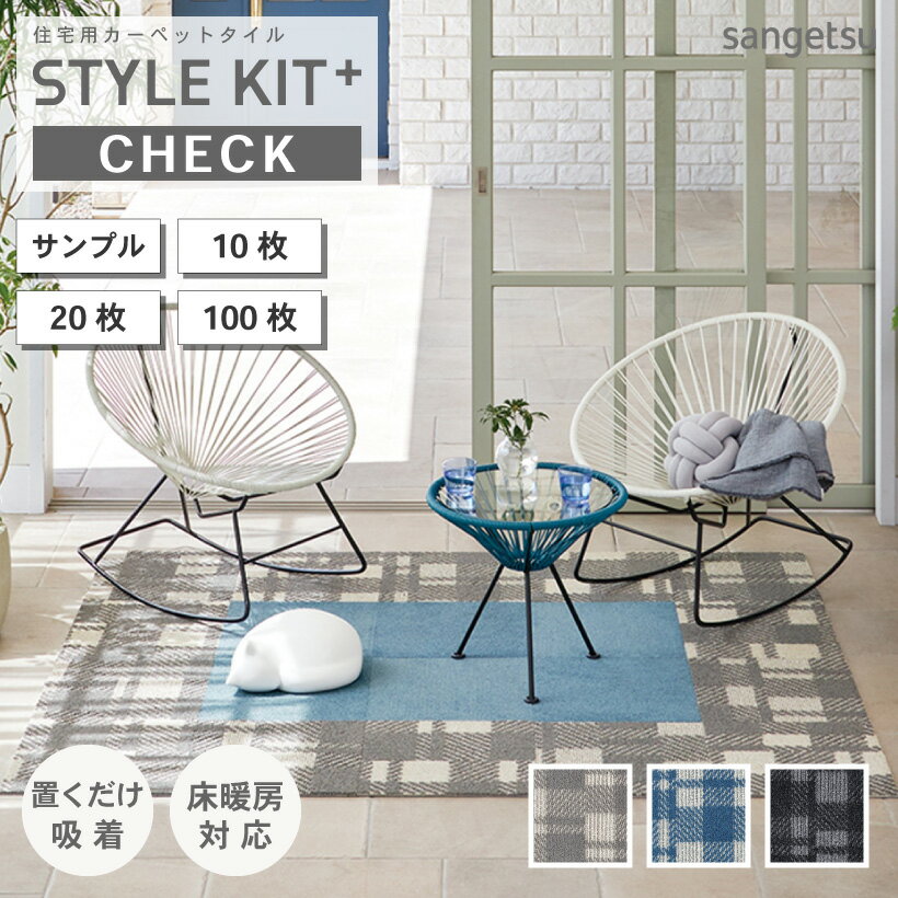 置くだけ、かんたん、リーズナブル。色や柄を自由に組み合わせて楽しめる住宅用のカーペットタイル。/ 洗える 賃貸 日本製 リビング 子供部屋 消臭 防汚性 ペット対応【最大★10,000円オフクーポン】 タイルカーペット サンゲツ スタイルキットプラス チェック 置くだけ 吸着 床暖対応 40×40 STYLEKIT+CHECK 全3色 カットサンプル 10枚 20枚 100枚
