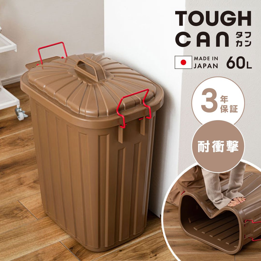 野外でも使用OK!耐衝撃の丈夫でタフなゴミ箱“タフカン”☆うれしい3年保証☆日本製丈夫で復元力のある大容量ゴミ箱60L(ブラウン)【完成品】LFS-938BRごみ箱 ダストボックス 分別 ポリエチレン プラスチック シンプル 耐衝撃 ベランダ 野外 フタ付き 蓋付き ロック 軽い 軽量 お手入れ簡単 おしゃれ