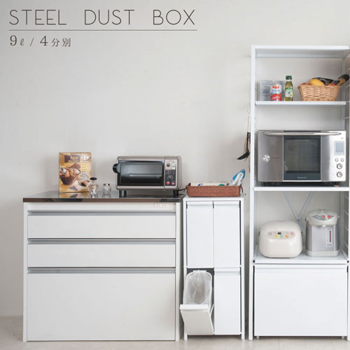 バイヤーおすすめポイント キッチン等に最適な、水やキズに強いスチール製のゴミ箱です。 開口部は大きく開けた状態で固定が出来るのでゴミ捨ての際に便利です。 場所をとらない薄型設計でシンク横のすき間などデッドスペースを有効活用できます。 足元は簡単に動かせるキャスターと床の歪みを微調整できるアジャスタータイプをお好みに合わせて選べます。 商品情報 商品名 ダストボックス 36L 4分別 商品番号 15-nj-0401 組立状態 一部組立が必要な商品(新品) 特記事項 - 付属品 9リットルペール×4、キャスター×4 カラー ホワイト サイズ 外寸:(約)幅35(36ビス含む)×奥行31×高さ89(アジャスター使用時85)cm 容量:9L×4 耐荷重:天板(約)5kg 重量:(約)14kg 仕様 本体:スチール(エポキシ樹脂粉体塗装) ペール:ポリプロピレン 備考 ●日本製 キッチンゴミ箱 ダストワゴン ペール 中身 見えない 屑かご 冷蔵庫の横 冷蔵庫 隙間 台所 フラップ扉 すき間 一人暮らし 蓋つき 斜め開き 目隠し リビング 紙くずかご くず篭 屑入れ 配送情報 配送料 ※お届け先により送料が異なります。 【東北~九州】 送料無料(軒先渡し) 【北海道】 1,000円/台(軒先渡し) ※但し、沖縄県、離島、遠隔地は中継料が必要です。 配送の注意事項 ※受注生産の為、発送まで1~2週間前後お時間を頂きます。(土日祝日を除く) その他 - 関連商品 18L(9L×2) 2分別 15-nj-0399 27L(9L×3) 3分別 15-nj-0400 36L(9L×4) 4分別 15-nj-0401 54L(9L×6) 6分別 15-nj-0402 30L(15L×2) 2分別 15-nj-0403 60L(15L×4) 4分別 15-nj-0404 ※商品詳細は各商品ページにてご確認ください。