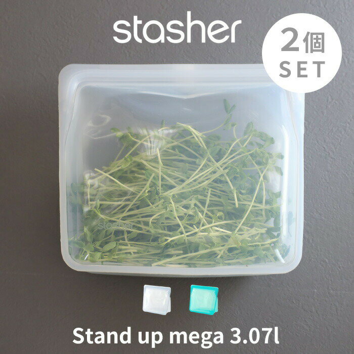 【着後レビューでアイススプーン/今治タオル/浴室用ブラシから選べる特典】【送料無料】【ラッピング】キッチン/キッチン雑貨/台所/料理/調理/時短/エコ/節約/便利【レビュー特典】 スタッシャー 〔 スタンドアップ メガ 3.07L 2個セット 〕 stasher 耐熱 冷蔵 冷凍 調理 料理 エコ 節約 時短 シリコーン シリコン フリーザ―バッグ ジップバッグ ロック ジップ 作り置き 電子レンジ オーブン 食洗機 密閉