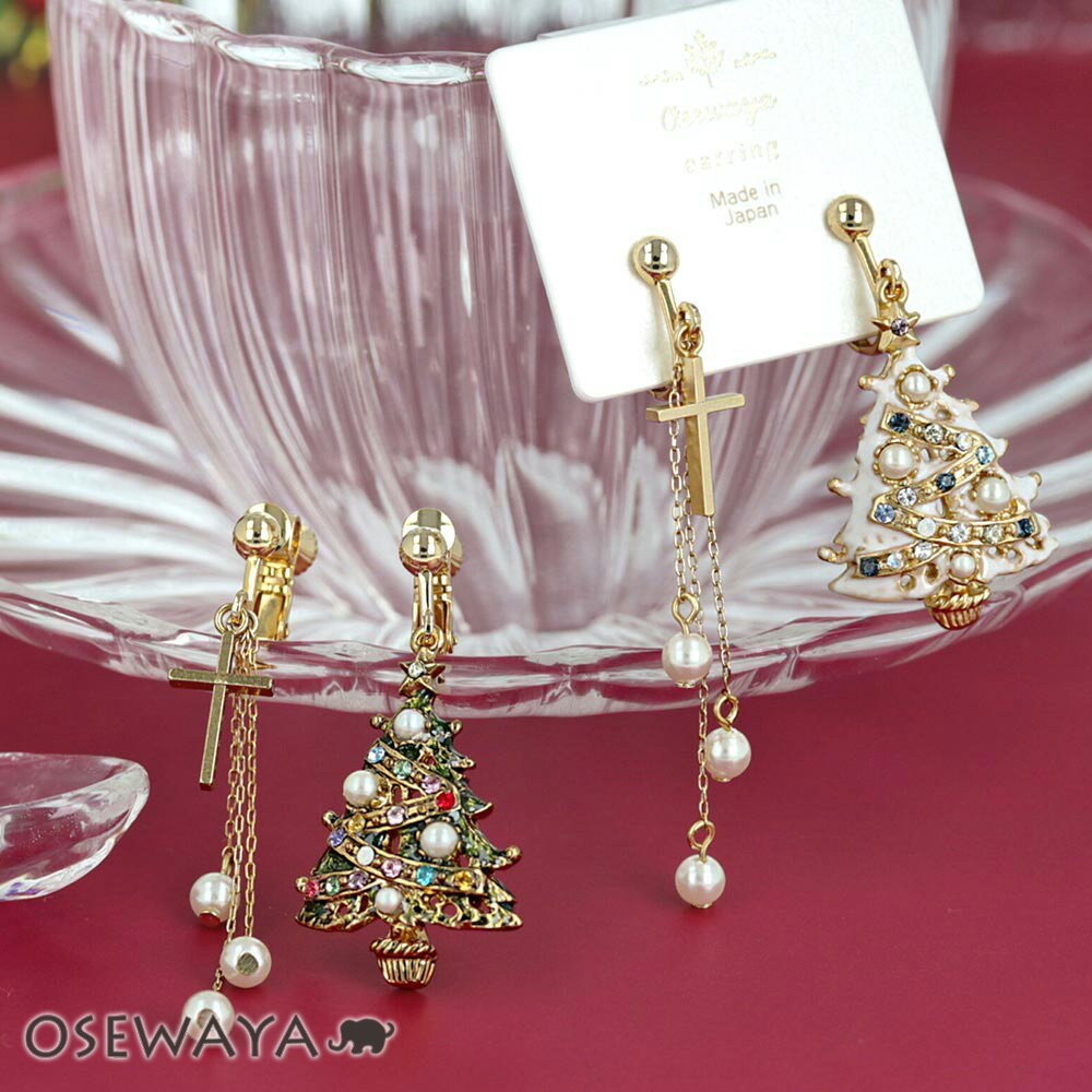 レディース アクセサリー 冬 季節 イベント パーティー プレゼント ギフト 贈り物 誕生日 人気 流行 デート カジュアル メール便 ネコポス【10/24夜限定20%OFFクーポン】【送料無料】イヤリング クリスマスツリー 十字架 クロス パール ネジバネ式イヤリング | OSEWAYA アクセサリー レディース 女性 大人 プレゼント 誕生日