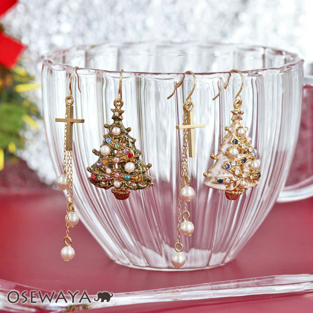 レディース アクセサリー 冬 季節 イベント パーティー プレゼント ギフト 贈り物 誕生日 人気 流行 デート カジュアル メール便 ネコポス【10/24夜限定20%OFFクーポン】【送料無料】ピアス クリスマスツリー 十字架 クロス パール フックピアス | OSEWAYA アクセサリー レディース 女性 大人 プレゼント 誕生日