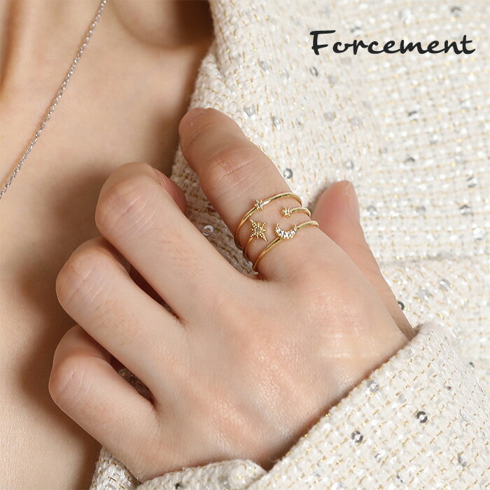 スターモチーフリングスターモチーフがかわいいリング 女性らしい カジュアル ムーン 星 月夏 夏服 韓国ファッション
