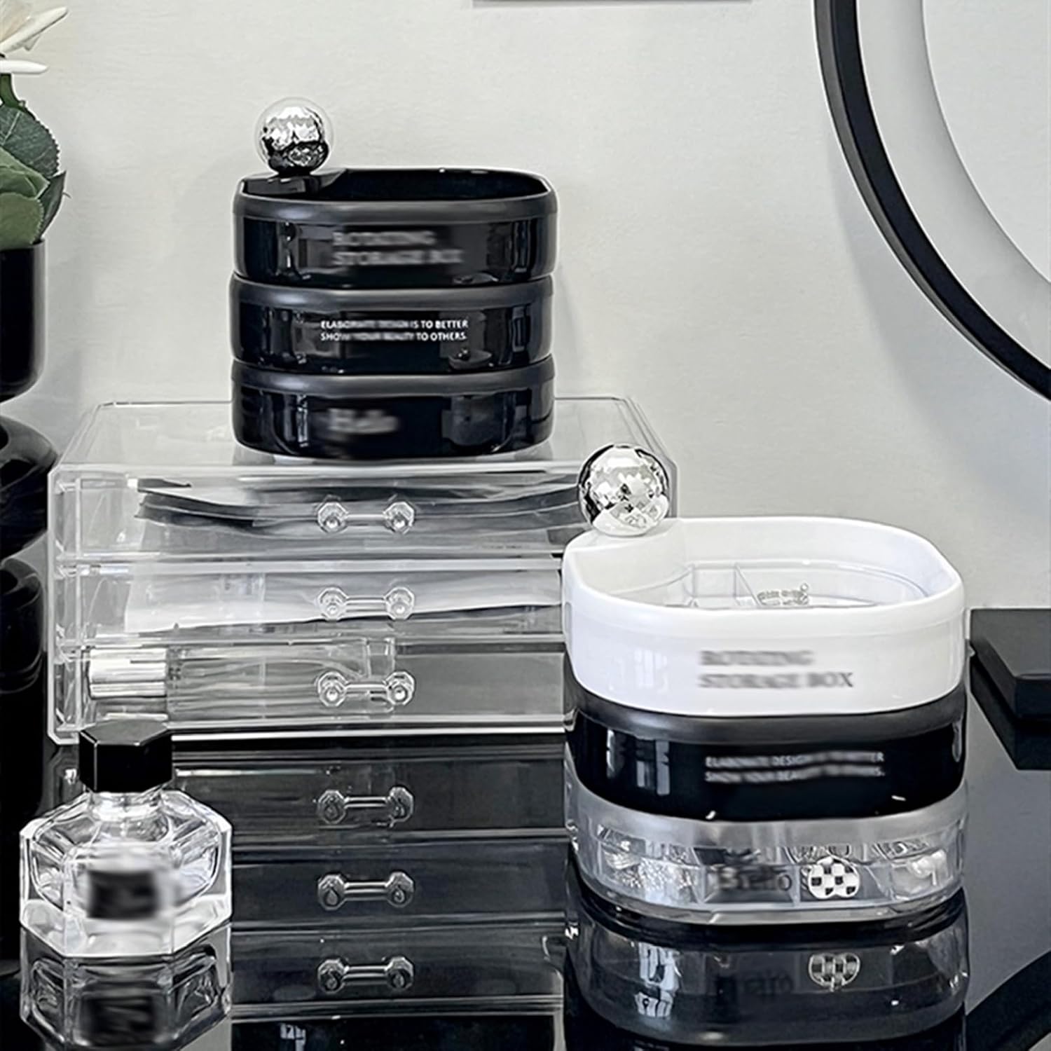 卓上収納ケース 収納ケース 透明 回転自由 円筒型 レディース 3層 回転 アクセサリーボックス 小物整理 女性 机上ボックス 多用ケース 持ち運び 卓上設置 便利グッズ 耐久性 機能的ケース 防湿