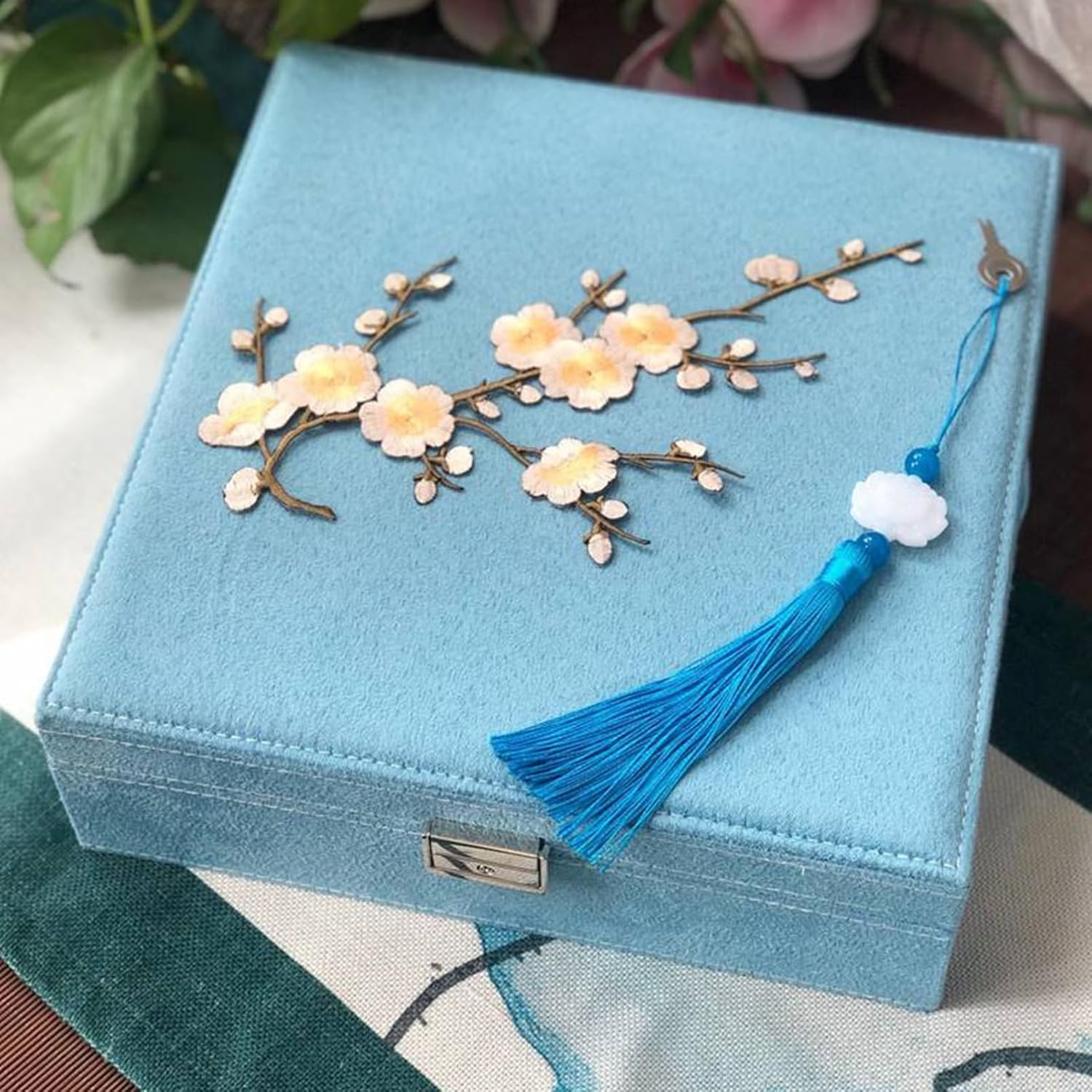ジュエリー収納 刺? フリンジ 中国風 四角 ジュエリー入れ ジュエリーボックス レディース 宝石箱 アクセサリーボックス チョーカー 首飾り ピアス・イヤリング・ネックレスを収納 持ち運び 軽量 携