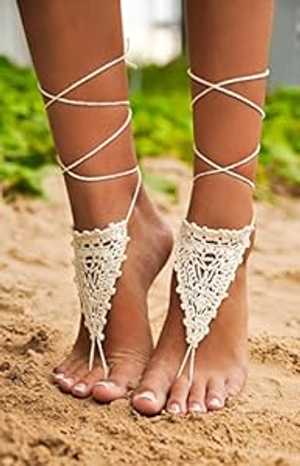 かぎ針編みアイボリーベアフットサンダル、ヌードシューズ、足ひも、ビクトリア朝レース、セクシー、ヨガソックス、アンクレット、ベリーダンス、ビーチウェディング底なしシューズ BarmineStore Crochet Ivory Barefoot Sandals, Nude shoes, Foot thongs, Vic