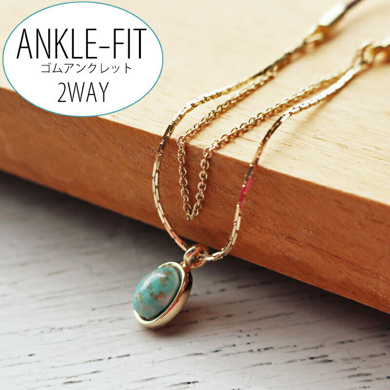 送料無料 日本製 新感覚 アンクレット ターコイズ ゴム【最大10%OFFクーポン】アンクレット 日本製 K18GP ターコイズ アンクルフィット コードブレス トルコ石 ブレスレット・