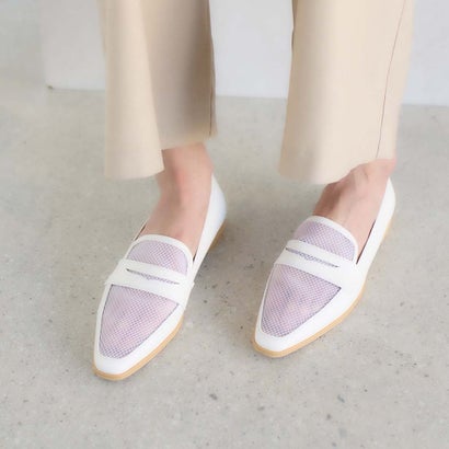 メッシュチュール素材でシアー感のあるローファー。トラディショナルでかっちりした雰囲気になりがちなローファーを、抜け感のあるこなれたデザインにアレンジ。夏でも楽しめる一足です。■point・通気性に優れ、足元に軽やかさをプラス ・メッシュデザインがモダンで洗練された印象◆carino カリーノ◆スタイリッシュでシンプルなスタイルを好むあなたへ。クール&フェミニンをベースに、上品で洗練された足元を。■素材:合成皮革#靴 #レディースシューズ #ローファー #メッシュ #チュール #カジュアル #トラベルこちらはアウトレット品です。主にはシーズン落ちの新品になりますが、中には細かな傷やシワ、若干の色落ち等がある場合がございます(訳あり品を除く)。235/23.5cm : 【重さ】178g / 【ヒール寸】1.5cm別カラーはこちら! ホワイト(ホワイトコンビ) カーキ